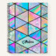 Elegant holographic colourful geometric Notebook. To make it extra special, it is also monogrammed and personalised with name or initials or any text you like, click the "customise further" link and use the design tool to modify the design if you like.