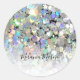 Elegant Holographic Glitter Black Custom Text Classic Round Sticker