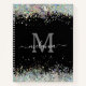 Elegant Holographic Sparkly Glitter Black Monogram Notebook