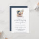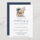 Elegant Horse Drawn Carriage Wedding Invitation. Join us for an elegant celebration as we exchange vows surrounded by the rich hues of a romantic wedding. Our wedding will feature a beautiful blend of a horse drawn carriage pulled by a beautiful white horse in romantic blue colours, all accentuated by the timeless charm of script calligraphy. Embrace the season's warmth and elegance with us on this special day.