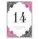 Elegant Hot Pink and Black Floral Lace Wedding Table Number