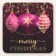 Elegant Hot Pink and Gold Bauble Merry Christmas Square Paper Coaster