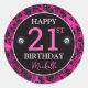 Elegant Hot Pink & Black Glitter Flowers Birthday Classic Round Sticker