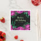 Pretty birthday paper napkin with magenta hot pink flowers and green foliage. The words can be changed to suit your own details or requirements. Would be perfect for a birthday party.
