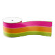 The design is bold, lively, and chic, featuring stripes of hot pink, rose pink, deep orange, citrus lime green, and sunny yellow. This adaptable wrapping ribbon is perfect for any special event, be it a birthday or a festive celebration, adding a touch of cheer and elegance to your gift.