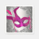 Hot pink masquerade party napkins with elegant pink feather mask on a rich silver swirl background. These beautiful hot pink masquerade party napkins work great for a masquerade birthday party, Quinceanera wedding, prom or other event. You can customise these fancy pink masquerade party napkins for your event by adding text in the font style and colour of your choice.