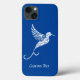 Enhance and Protect your cell phone with a custom-made designer cell phone case. Elegant Hummingbird White on Blue Design Personalised iPhone Case Cover. Personalise with name, initials, message, quote, or anything you desire. Other cell phone styles are available. Great gift idea.