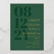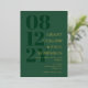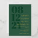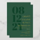 Elegant typography wedding invitation in hunter green with your wedding date in large numbers down the side of the invitation. Add names and wedding wording in gold foil. Gold foil and green wedding invitation with your names in a large font.