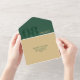 Elegant and masculine all in one wedding invitation in green and tan with your wedding date in big bold dark green numbers. Add your wedding invitation wording in tan text against hunter green.