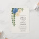 Celebrate your special day with this Elegant Hydrangea Floral Wedding Invitation, featuring hand-painted blue hydrangeas, soft white roses, and lush eucalyptus greenery in a refined corner arrangement. The delicate watercolor style and subtle paper texture create a timeless, romantic look that suits garden weddings, coastal celebrations, spring and summer events, or any modern classic wedding theme. Fully customizable with your names, dates, and details, this invitation offers a beautifully balanced blend of elegance and fresh botanical charm—perfect for couples seeking a sophisticated, nature-inspired design.