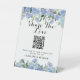 Elegant Blue Hydrangea Flower QR Code Share The Love Photo Pedestal Sign