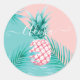 elegant illustration of aloha pineapple baby showe classic round sticker