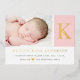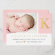 Elegant minimalist real gold foil initial block letter on blush pink with photo girl baby birth announcement. Personalise this by adding your own photo and details to make it special and your very own.