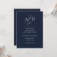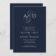 Elegant Initial Script Monogram Navy Blue Wedding Invitation