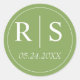 Elegant initials green wedding classic round sticker