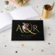 Elegant ampersand, eucalyptus branch and greenery with with pink rose flowers gold foil black floral photo wedding guest book. This modern design includes an elegant ampersand and the couple's initials in gold foil along with an eucalyptus branch and roses in pink and magenta on black background. There is a gold thin border around it. The back includes a photo of the couple.