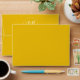 Elegant initials and yellow sunflowers fall wedding envelope. Get ready to fall in love with our elegant wedding envelope featuring your initials and sunny yellow sunflowers. The flap is adorned with your initials in a stylish script font against a delightful yellow background. Open it up to reveal a stunning bouquet of watercolor sunflowers and autumn-coloured leaves. It's just perfect for our "Floral arch with yellow sunflowers" wedding theme.
