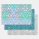 Elegant iridescent faux turquoise rhinestones wrapping paper sheet