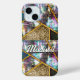 Elegant iridescent girly faux glitter geometric iPhone 15 Case. To make it extra special, it is also monogrammed and personalised with name or initials or any text you like, click the "customise further" link and use the design tool to modify the design if you like.
