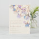 This elegant save the date card is perfect for spring and summer weddings. This design features a ring of watercolor irises in shades of lilac and periwinkle blue. Subtle touches of gold add a glistening, magical element.