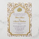 Celebrate your wedding in style with this elegant Wedding invitation featuring a lattice leaf background and an Islamic Arch with the words "Bismillah Ilrahman Ilrahim".