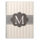 Elegant Ivory Beige Stripes Brown Custom Monogram Notebook