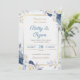 A timeless ivory backdrop adorned with soft blue florals and elegant gold accents, this wedding invitation features a beautiful floral ampersand design. The delicate blue blooms are complemented by subtle gold details, creating a sophisticated and romantic atmosphere. Perfect for couples seeking a blend of classic charm and modern elegance for their special day.