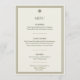 Complete your reception tablescape with this Ivory & Gold Green Border 5x7 Wedding Menu Card, part of the elegant Ivory & Gold Green Border Wedding Collection. Featuring a timeless ivory background framed with a double gold and green border and accented by a subtle palm motif, this menu card adds sophistication and cohesion to your wedding stationery suite.