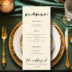 This sleek ivory wedding dinner menu features beautiful minimalist black typography on the cream colour for your formal event. Traditional colours combined with the current trend of simple script on neutral colour menus.