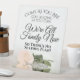 This beautiful self-standing pedestal sign will let your guests know that there is no seating plan so they can sit wherever they like. It features a simple yet elegant design with a single long-stemmed pale orange or ivory peach coloured rose reflecting in a pool of water. Text reads: Come as you are, stay as long as you can, We're family now, so there's no seating plan. Perfect way to invite your guests to mingle and meet each other.