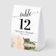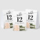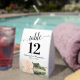 These tent signs will not only help your guests find their tables, they'll also make your wedding reception more beautiful. The design is both elegant and romantic featuring a single pale orange or ivory peach coloured rose lying on its side reflecting in water with waves and ripples. The title is in lacy script calligraphy with bold numbers so your guests can easily find the right table. There is room for the names of the couple and the wedding date.
