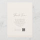 The front showcases a clean, modern menu layout with graceful typography, while the back includes a heartfelt Thank You message and optional QR code for sharing wedding photos or special memories. Designed to feel airy, romantic, and effortlessly luxurious, this menu complements classic, garden, editorial, and fine-art wedding styles.