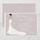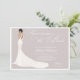 Elegant bridal shower invitation features gorgeous glam bride in silk wedding gown with open back adorned with gold and gemstones. Multiple hair colours and skin tone options to represent the bride-to-be.