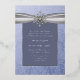 Chic winter wedding invitation done in an ice blue damask background. Graphics of a silvery white satin looking ribbon, runs across the top of the dusty dark blue text area and is decorated, in the middle, with a silver tone and diamond looking snowflake jewel. Personalise the real silver foil text to suit your needs.
