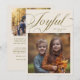 Elegant holiday card featuring a typography text that says "joyful" in a calligraphy font above your square photo. Add a second photo on the back along with your message. Background is cream.