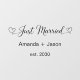 Elegant Just Married Hearts Black Script Window Cling