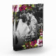 This gorgeous photo block has beautiful floral arrangements at the top left and bottom right corners, nestling the customisable just married message, newlyweds names and date of event. The English calligraphy and simple serif fonts gives it the final touch of elegance. You just need to upload your photo and update your wedding details.