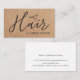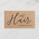 Elegant customisable business card template with printed kraft paper background, dark grey scissors icon and handwriting text. Modern clean design, perfect for hair stylist, hairdresser.