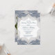 This ornate lace border design features delicate floral patterns and intricate embroidery-style detailing, creating a romantic and timeless frame ideal for wedding invitations, announcements, or keepsakes. The soft blue gradient background adds a touch of sophistication, while the blank centre provides space for personalised text or photos.