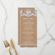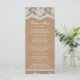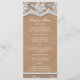 Elegant Lace & Rustic Craft Paper Slim Wedding Reception Dinner Menu. Delicate Lace Design on Soft Brown Craft Paper Background. No Actual Lace or Craft Paper is Used on This Invite, Lace and Texture Effects are Printed.