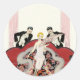 Elegant Lady in Paris stickers. Art deco illustration from 1924. French illustrator Georges Barbier completed dozens of beautiful illustrations depicting the roaring twenties in France. Elegant Lady in Paris features a young blonde woman sitting on a couch as two suitors in tuxedos flirt with her. The woman wears a pink gown and holds a pink feather fan while above them sit pink curtains. A great gift for fans of art deco fashion, vintage art, and Georges Barbier.