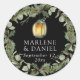 BLACK BACKGROUND VERSION | Elegant, sophisticated and romantic winter or Christmas wedding invitation sticker or envelope seal in a moody black with Holly, pine branches and eucalyptus foliage and a glowing lantern all painted in watercolor. There is a complete collection of products to coordinate (if we missed one we'll create it for you, just email us at: audreyjeanner@yahoo.com) Painted in watercolor and graphically designed by internationally licensed artist and designer, Audrey Jeanne Roberts ©.