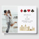 Modern, elegant Las Vegas Destination Wedding Guest Book. Design features Las Vegas City Skyline In gold, clubs , diamonds , hearts and spades icons in gold elegant frame, 2 photos and details in trendy lettering on the front.