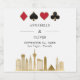 Modern, elegant Las Vegas Destination Wedding Bottle Labels. Design features Las Vegas City Skyline In gold, clubs , diamonds , hearts and spades icons in gold elegant frame and details in trendy lettering on the front.