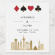 Modern, elegant Las Vegas Destination Wedding Bottle Labels. Design features Las Vegas City Skyline In gold, clubs , diamonds , hearts and spades icons in gold elegant frame and details in trendy lettering on the front.