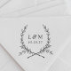 Custom-designed wedding logo/Save the Date rubber stamp featuring rustic hand-drawn laurel wreath and customizable initials and date. Personalize this elegant wedding stamp today to give your envelopes a touch of personal style!
