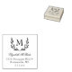 Elegant return address stamp featuring a laurel wreath around a monogram. Customise this product by adding your name, initial, and address. Beautiful script font is used for your name.