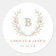 Elegant Laurel Wreath Wedding Monogram Envelope Classic Round Sticker