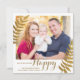 Elegant Laurels Happy Modern Photo | Gold Holiday Card