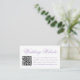 Add a romantic and graceful touch to your wedding suite with this lavender wedding website enclosure card. The front showcases “Wedding Website” in charming lavender calligraphy on a fresh white background, with space to include a QR code linked to your wedding website and personalised instructions. The back features a lovely lavender background with a white floral crest encircling the couple’s monogram, along with their names and wedding date in elegant white script. A lovely addition to whimsical, spring, or pastel wedding themes.